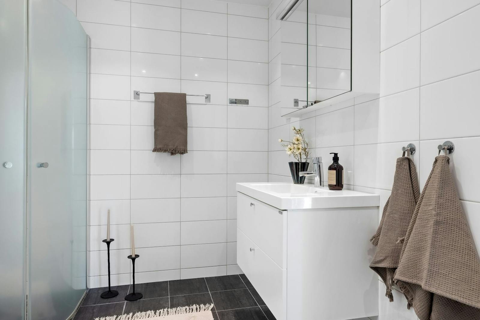 Modern villa i souterräng med ljusa nyanser och fina materialval. Vattenburen golvvärme på nedre plan och övre plan har element (vattenburna).