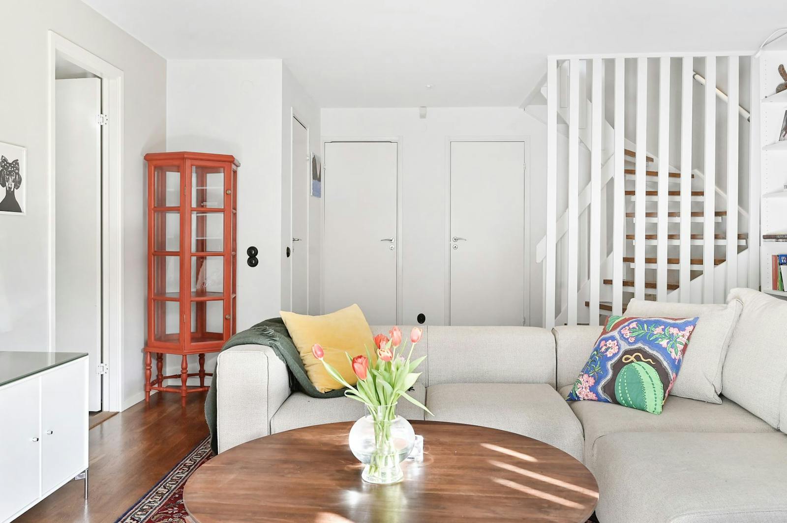Radhuset ligger lugnt på en privat väg, vilket skapar en trygg och barnvänlig miljö med minimal trafik. Här kan barnen leka fritt medan du njuter av ett harmoniskt boende med allt du behöver inom räckhåll.