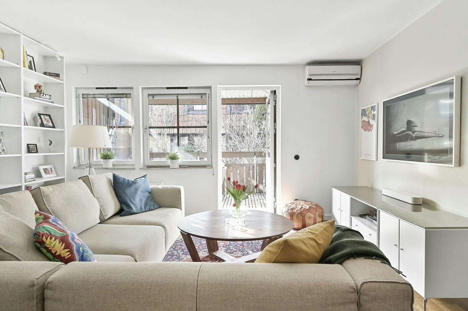Stort och luftigt vardagsrum med rikligt ljusinsläpp samt utgång till den härliga terrassen som har sol hela dagen samt underbar utsikt över Mälaren. Vardagsummet har gott om plats för större soffgrupp samt matgrupp för 6-10 personer. Halvöppen planlösning mot köket som erbjuder mycket gott om förvaring samt generösa arbetsytor. Matplatsen vid fönstret har plats för matgrupp för 4-6 personer. Hallen är möblerbar och har gott om plats för ytterkläder och skor. Önskas ett badrum extra finns rör och avlopp sedan tidigare i golvet vilket underlättar en byggnation.