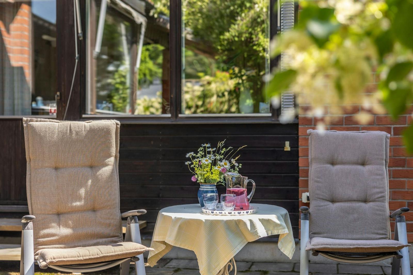 I trädgården finns äppelträd (Ingrid Marie och Oranie), svarta och röda vinbär, krusbär, rabarber, hallon, björnbär och rosenkvitten. Ägarna har en robotgräsklippare som de kan sälja separat för den som önskar och för att nästa ägare inte ska behöva dra om gränstrådar.