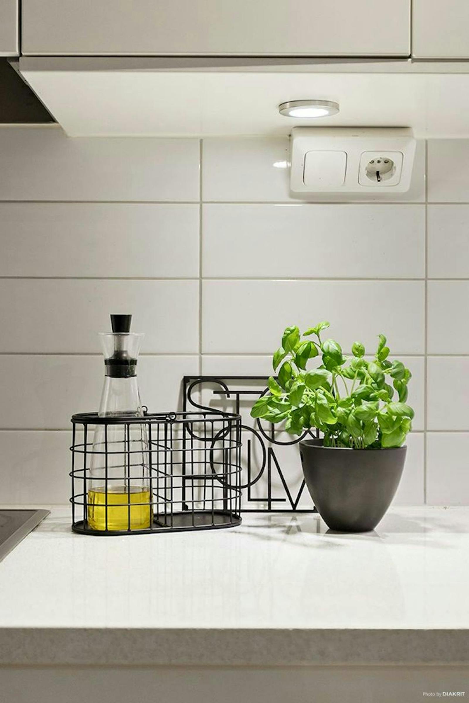 Köket är modernt och stilrent med ljusa skåpsluckor, goda arbetsytor i ljus kompositsten och generös förvaring. Här finns glaskeramikhäll, ugn, diskmaskin samt kyl och frys – ett kök som bjuder in till både vardagsmatlagning och middagar med vänner.